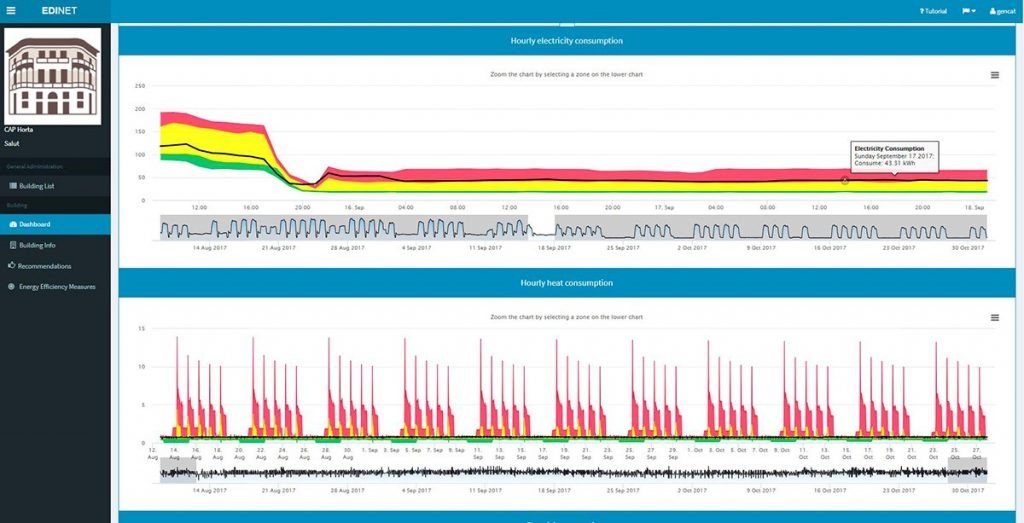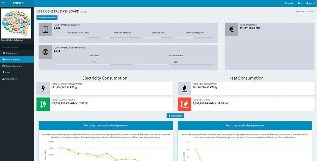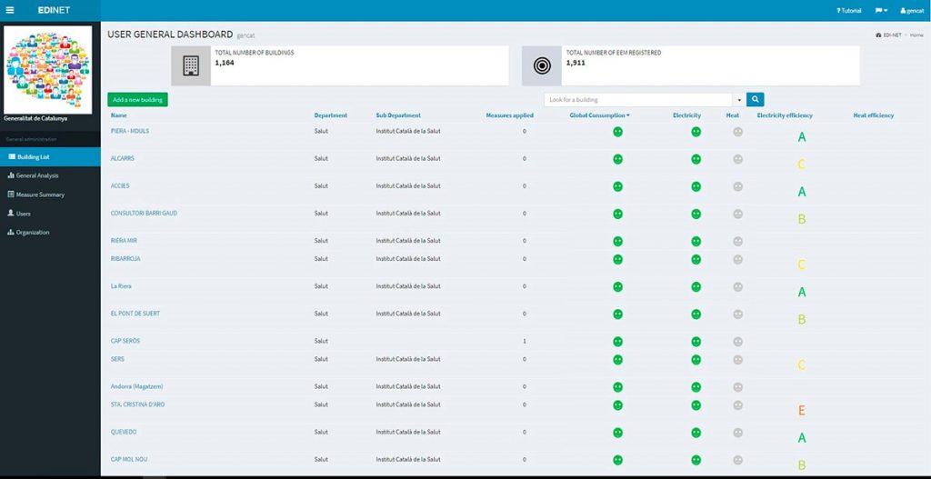 The Platform allows a continuous monitoring of the energy consumption of a large set of buildings. Building area and occupancy, energy resources (hourly and monthly data), Energy Efficiency Measures (EEM) or facilities information are some of the data collected by the EDI_Net Platform. The advantages come from the continued use and accumulation of more and more data that permits a better benchmarking and also the collection of EEM lets to evaluate its effectiveness in terms of savings, investments and ROI.