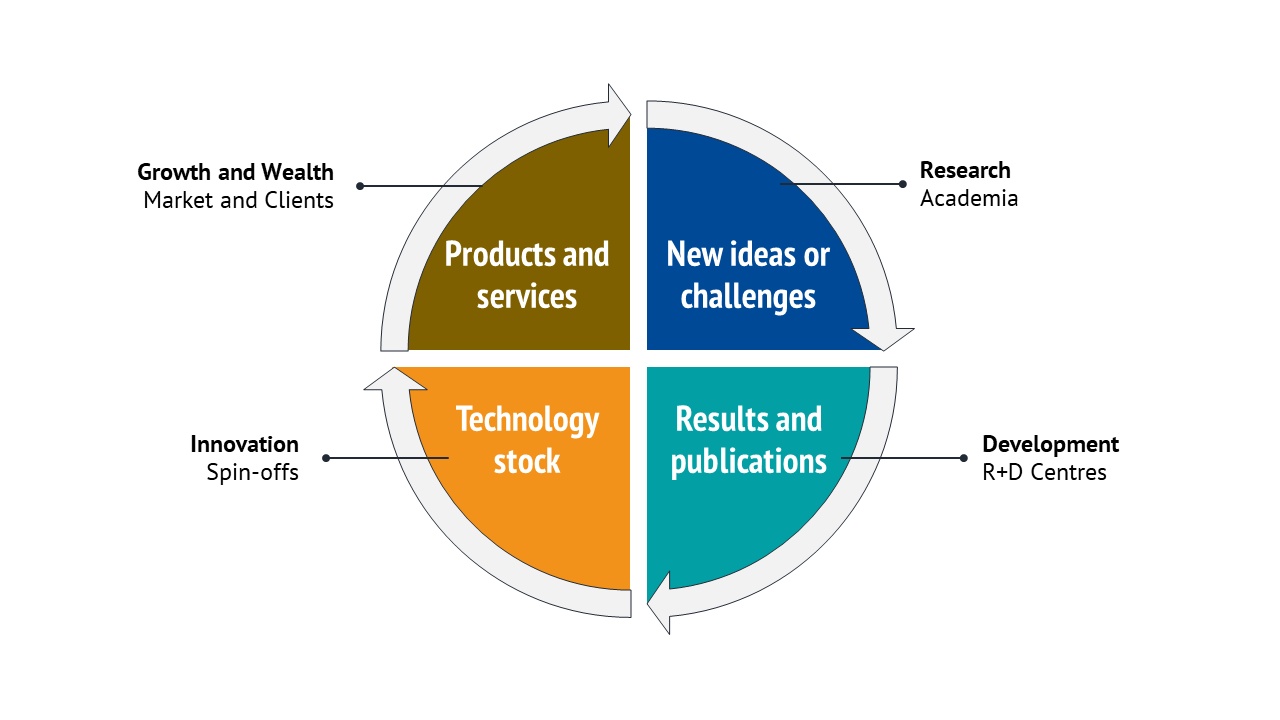 CIMNE’s holistic innovation model, known as the “Cycle of Ideas,” ensures that research progresses from initial discovery to prototype, catering to commercial success through spin-offs. By integrating CIMNE Tecnología into its technology transfer ecosystem, CIMNE not only accelerates the journey from lab to market but also reinvests returns from successful ventures back into research, fuelling a continuous cycle of innovation and impact.